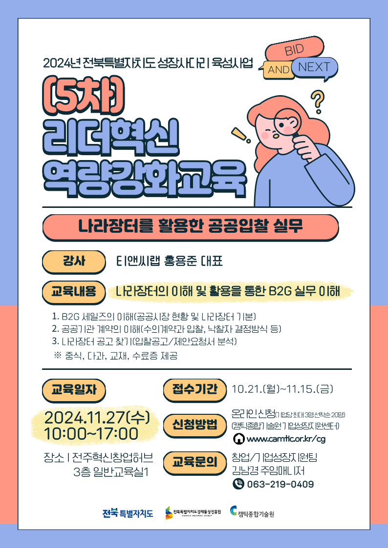 2024년 성장사다리기업 리더혁신역량강화교육(5차) [나라장터를 활용한 공공입찰 실무]